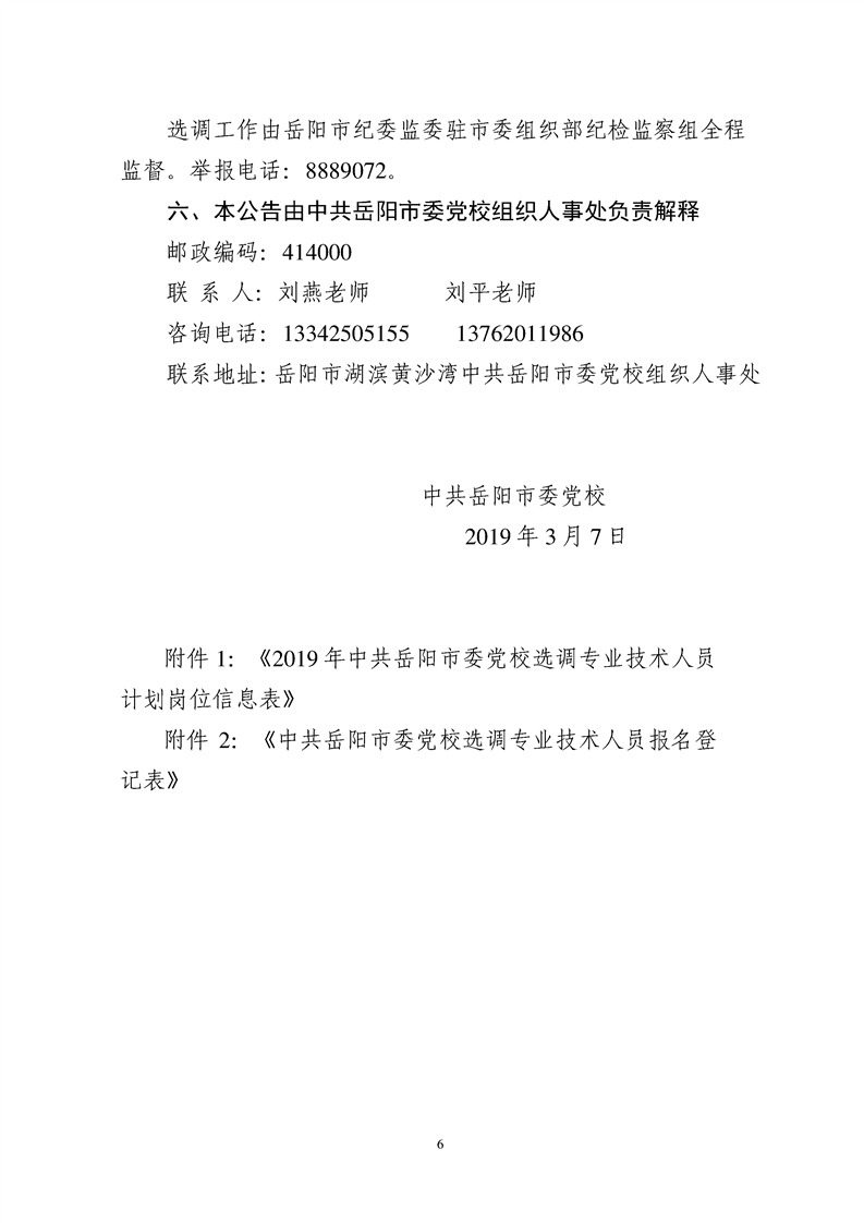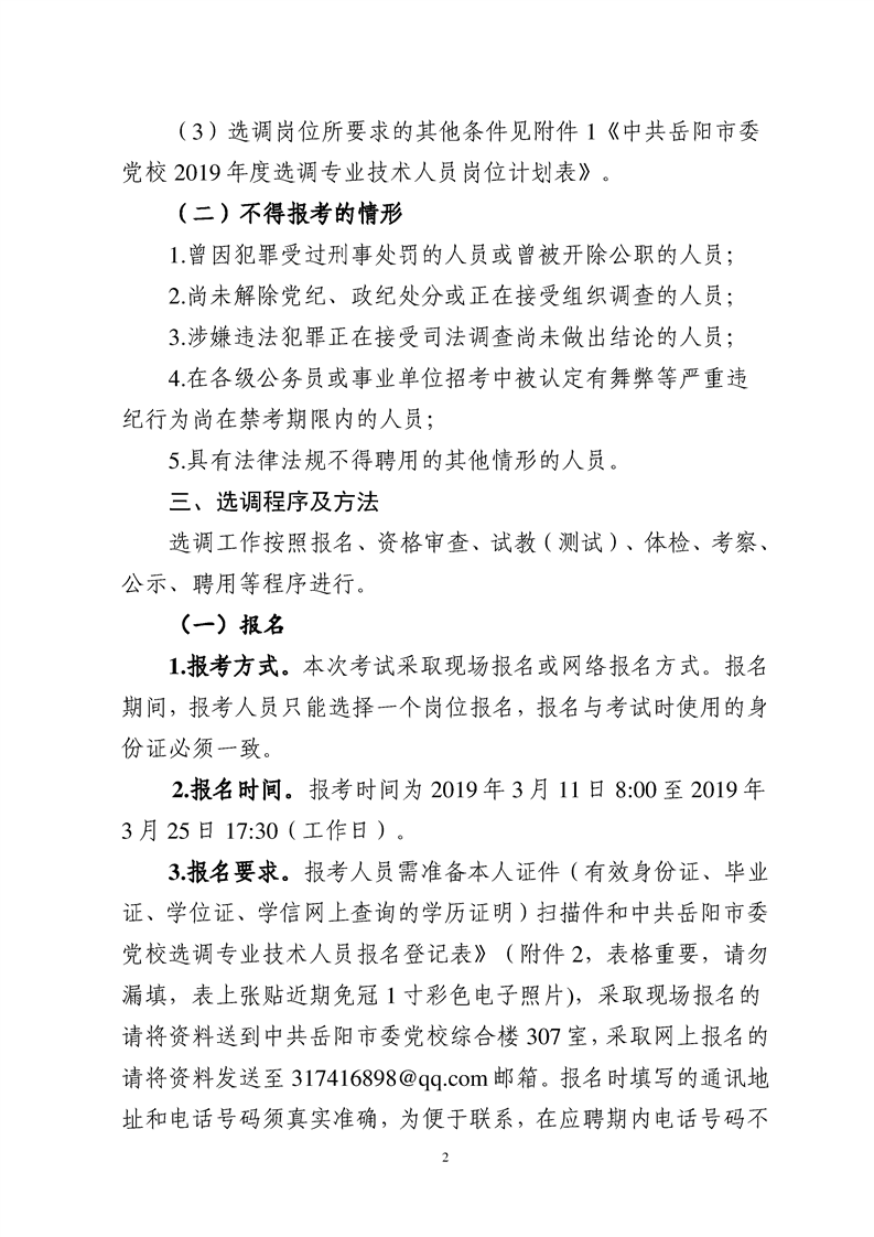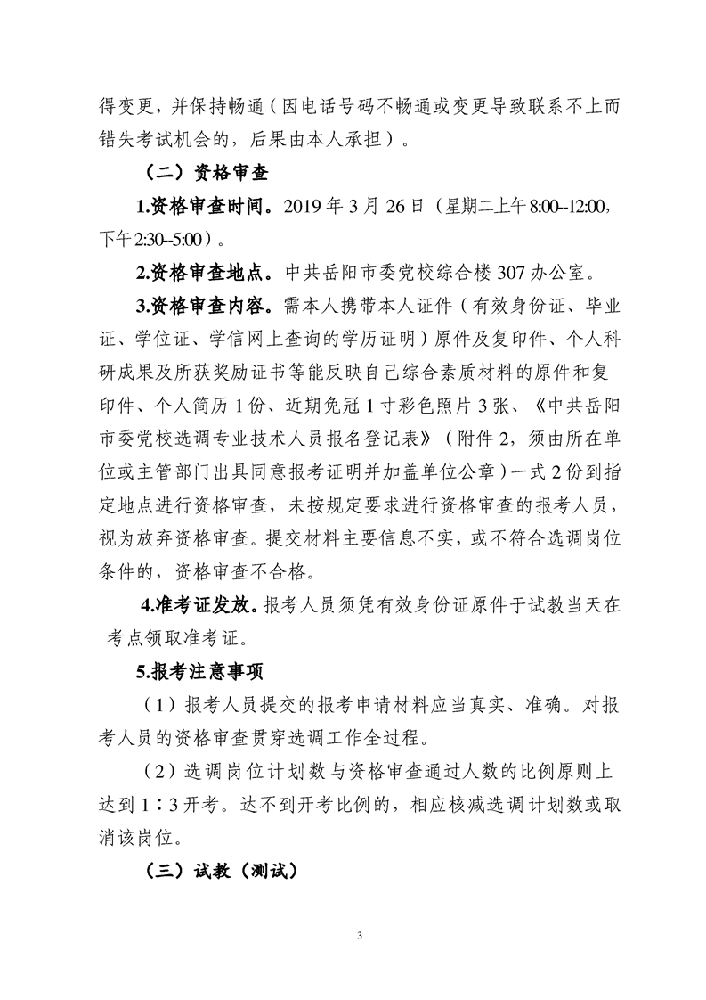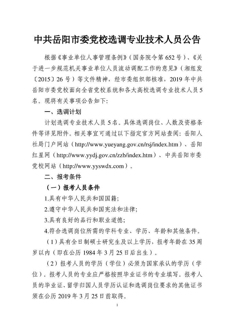 中共岳阳市委党校选调专业技术人员公告