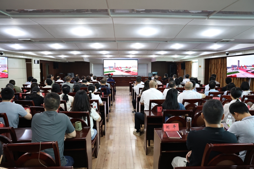 9月3日上午,纪念中国人民抗日战争暨世界反法西斯战争胜利80周年大会在北京天安门广场隆重举行。市委党校组织全体教职员工集中收看现场直播。